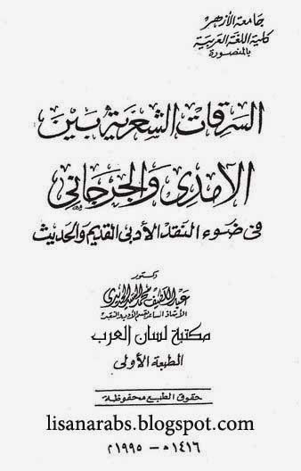 عنوان الكتاب: السرقات الشعرية بين الآمدي و الجرجاني في ضوء النقد الأدبي القديم و الحديث