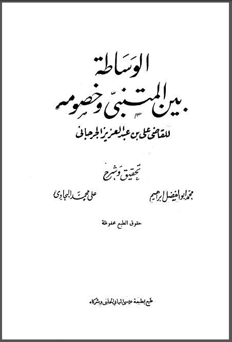عنوان الكتاب: الوساطة بين المتنبي و خصومه